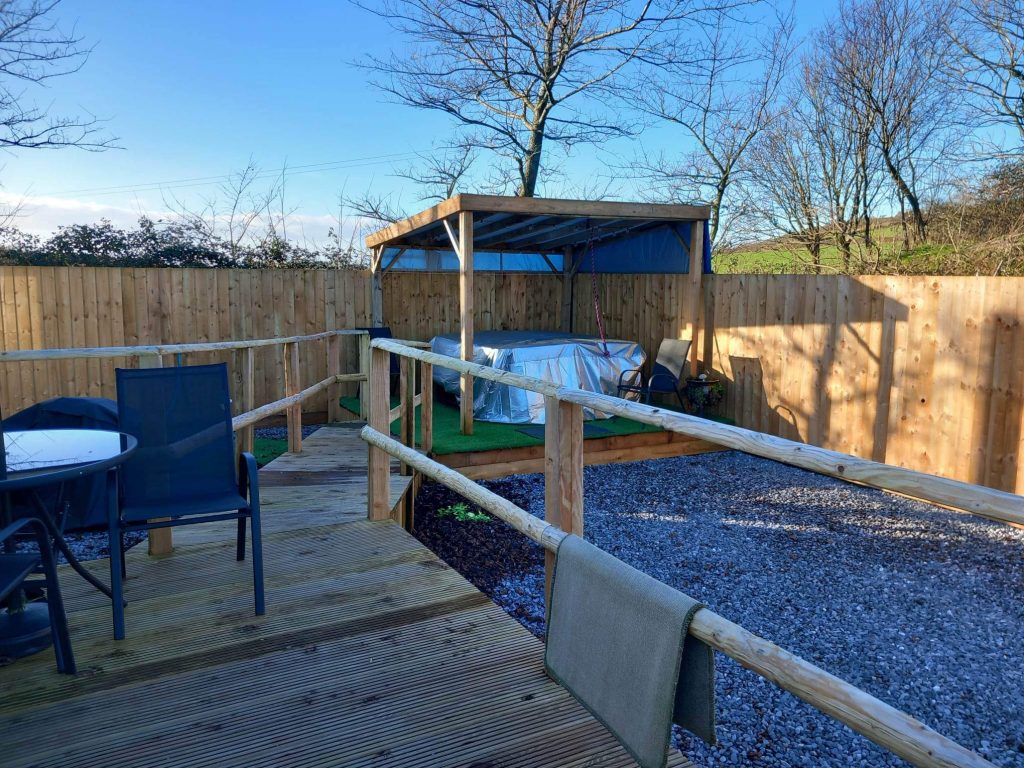There is both an indoor and outdoor dining area and for those cosy nights a relaxing lounge with built in fire and TV. It is fully double glazed and centrally heated. Oh and not forgetting the undercover private hot tub! Don’t worry, there are no steps on our brand new purpose built decking, as the access is via ramps and handrails for safety.